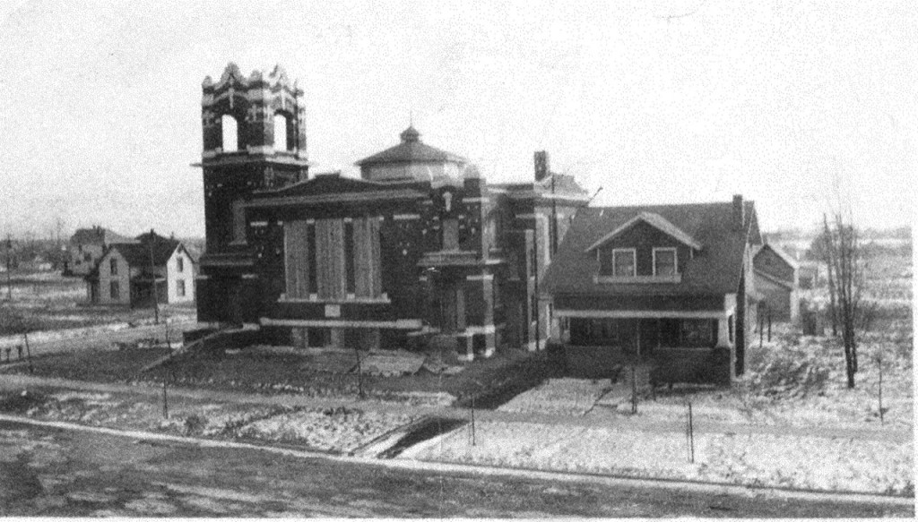 In the earliest days of the church’s assembly, Sunday services were held in Schultz Hall, on the campus of the Bible Training School in Fort Wayne, just across the street from the eventual site of the church building. The church grew out of the school that had been started in Bethany, Ohio, in 1904 and that had moved to Fort Wayne, Indiana, in 1905. As might be expected then, the Bible Training School leadership played key roles in pastoring and teaching the congregation in those early days of First Missionary Church’s history. Throughout the decades to come, this close relationship continued between First Church and the Fort Wayne campus, which came to be known as Fort Wayne Bible Institute, Fort Wayne Bible College, Summit Christian College, and finally Taylor University Fort Wayne.
